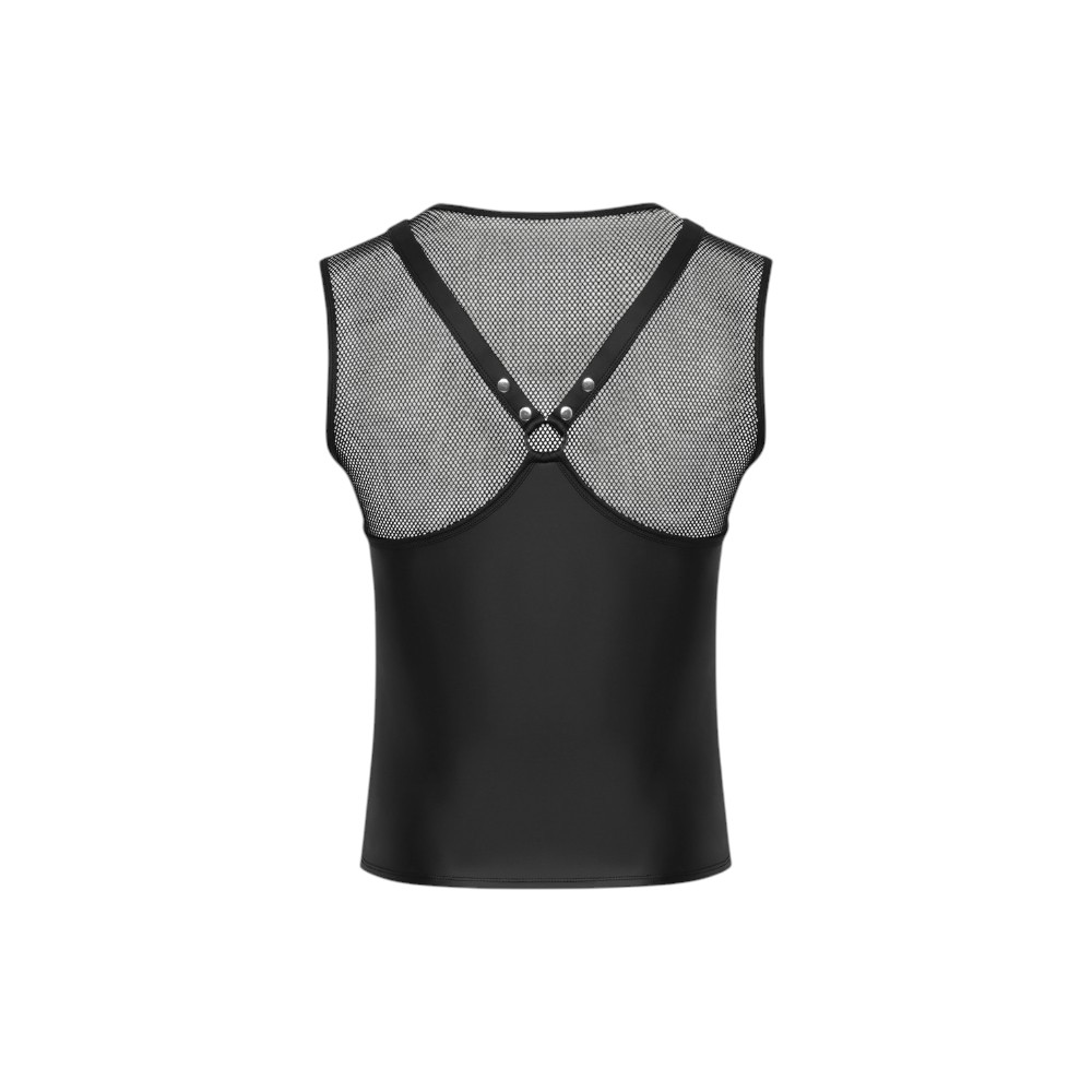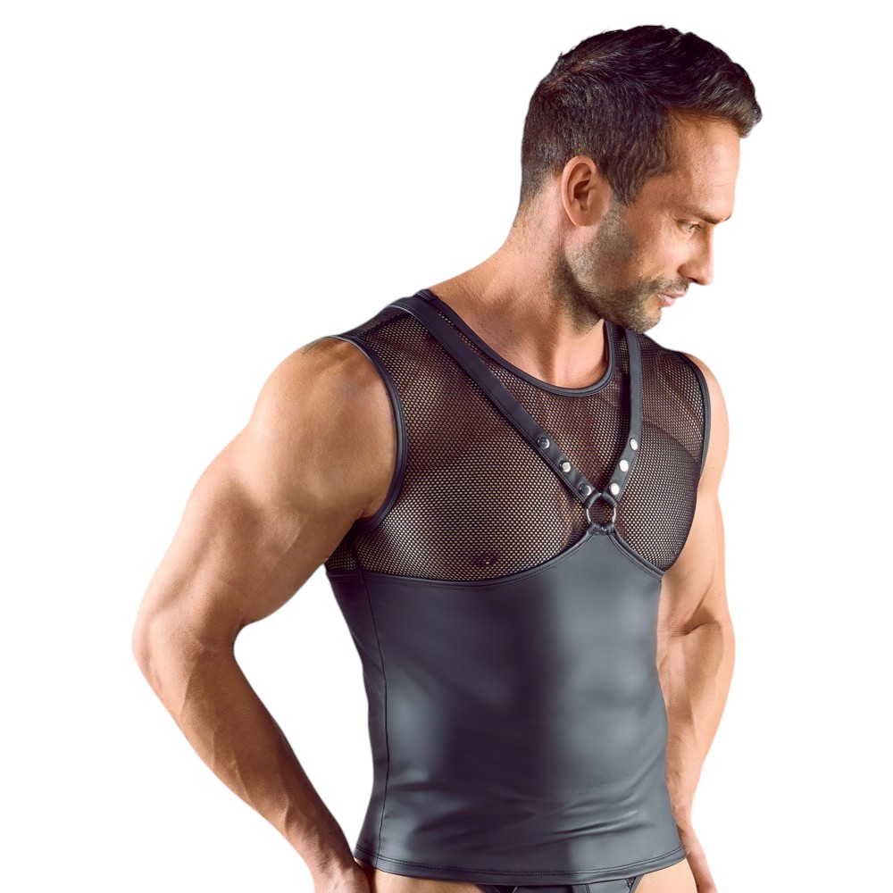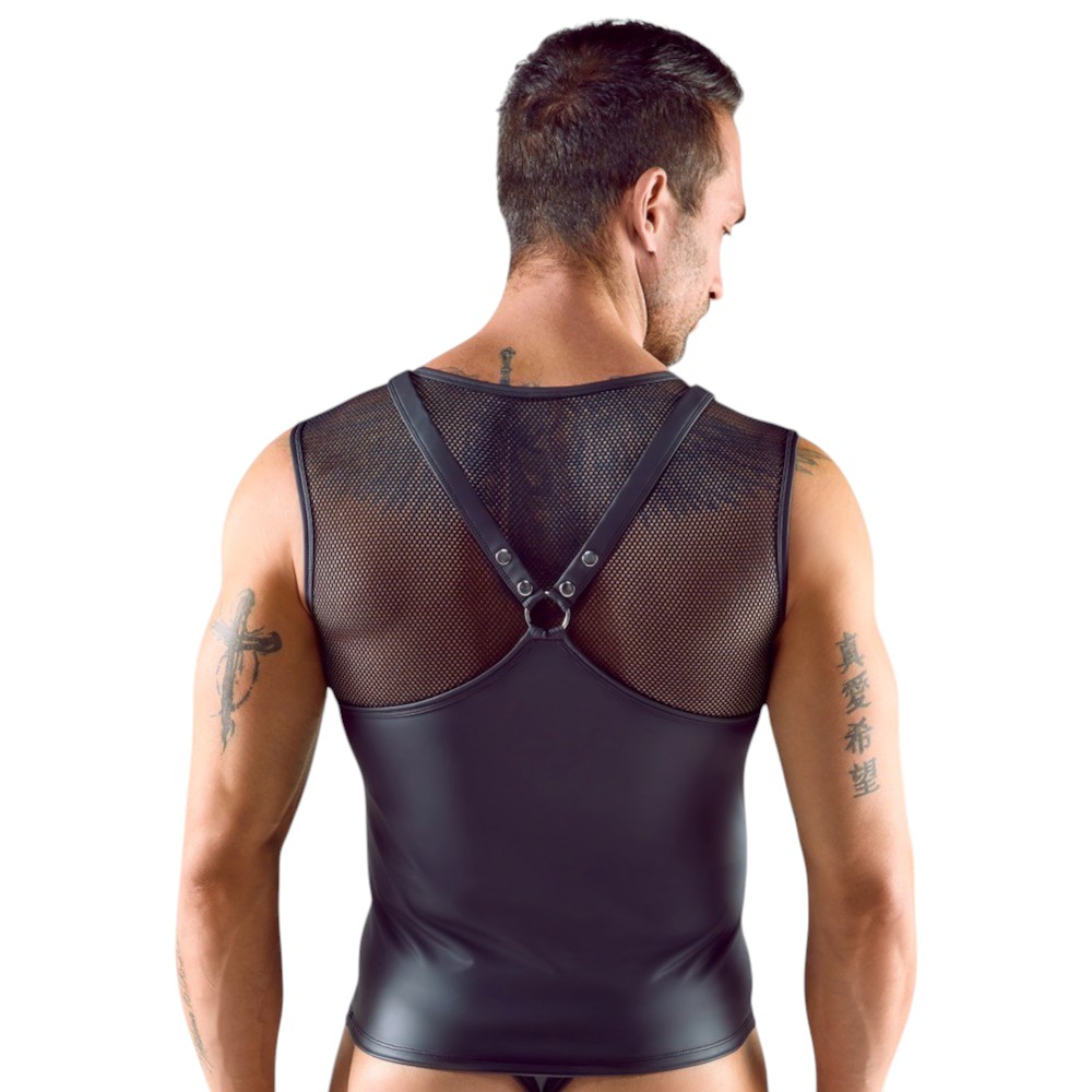Ten bezrękawnik w stylu harness został zaprojektowany z myślą o mężczyznach, którzy lubią przyciągać uwagę i eksponować sylwetkę.