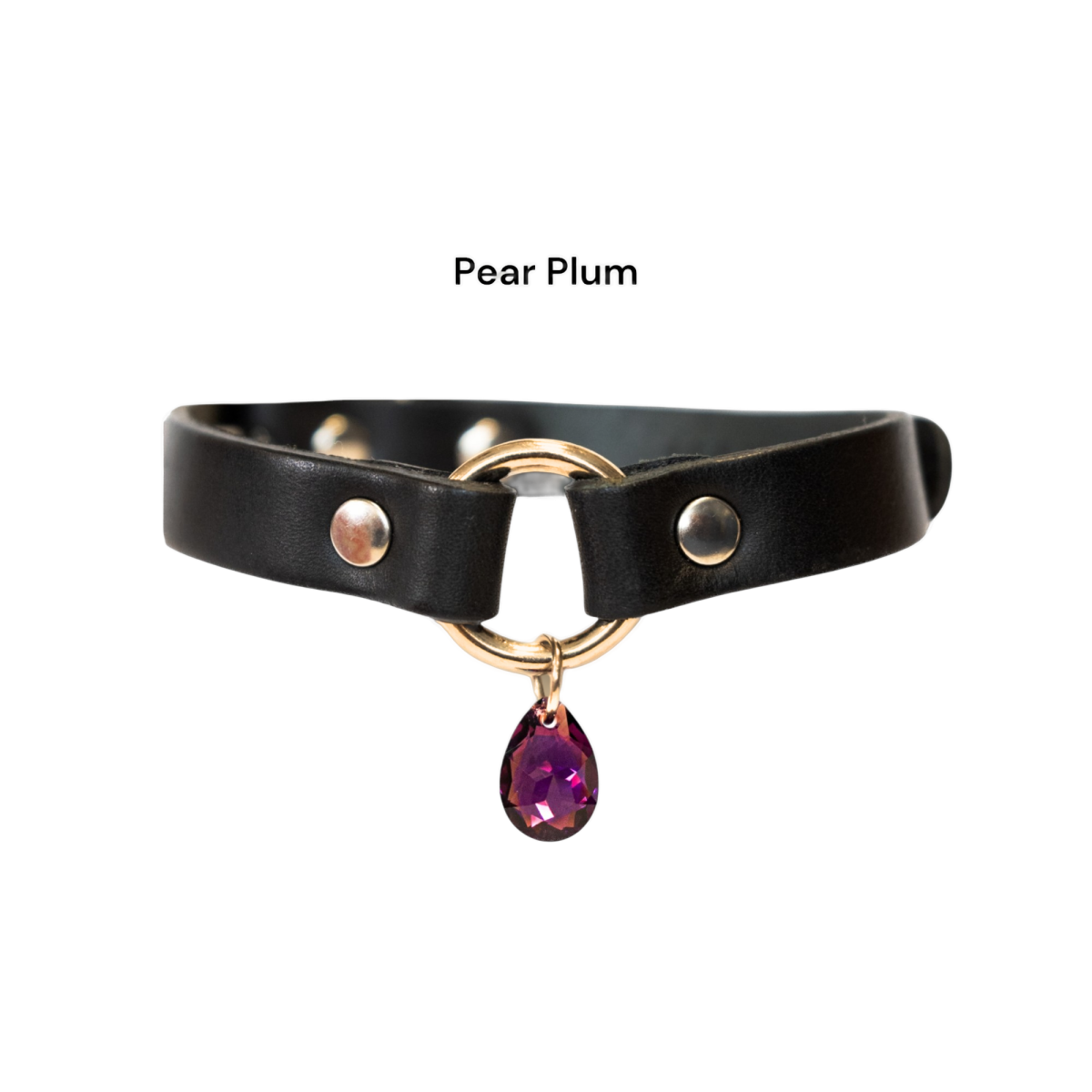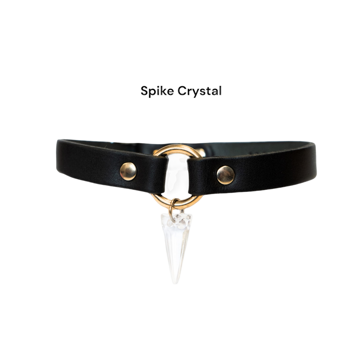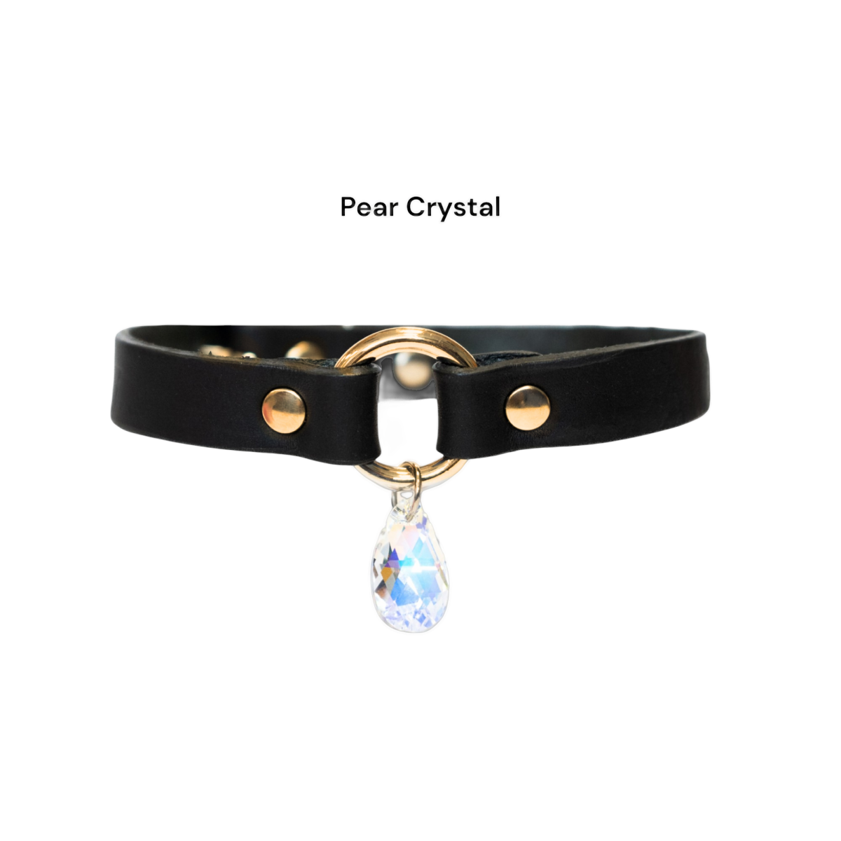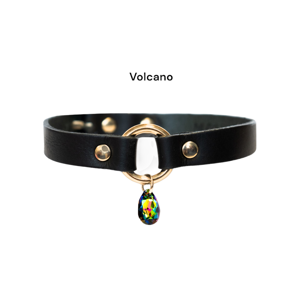 Skórzany choker w czarnym kolorze, ozdobiony złotym kółeczkiem, z kryształem Swarovskiego.