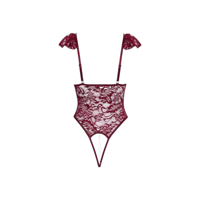 Zmysłowe body w odcieniu głębokiej czerwieni to prawdziwa gratka dla miłośniczek odważnej bielizny. Wykonane z delikatnej koronki w kwiatowy wzór, pięknie podkreśla kobiece kształty, jednocześnie pozostając miękkie i elastyczne dla pełnego komfortu noszenia.