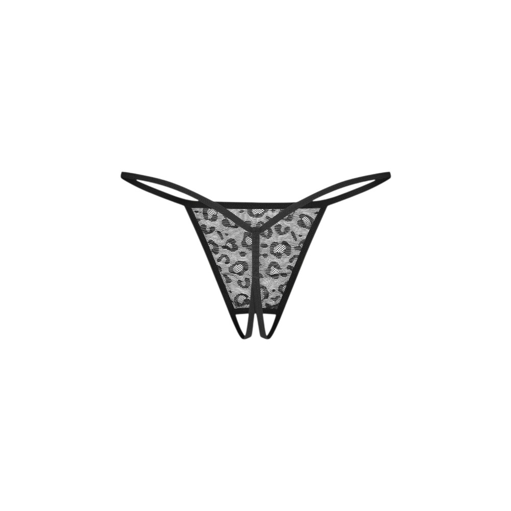 Ten dwupak otwartych stringów to duet, który łączy w sobie klasyczną koronkową elegancję z dziką energią panterkowego printu.