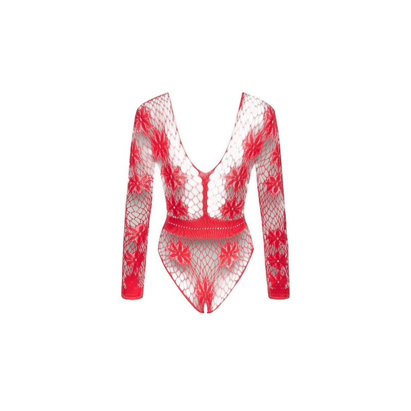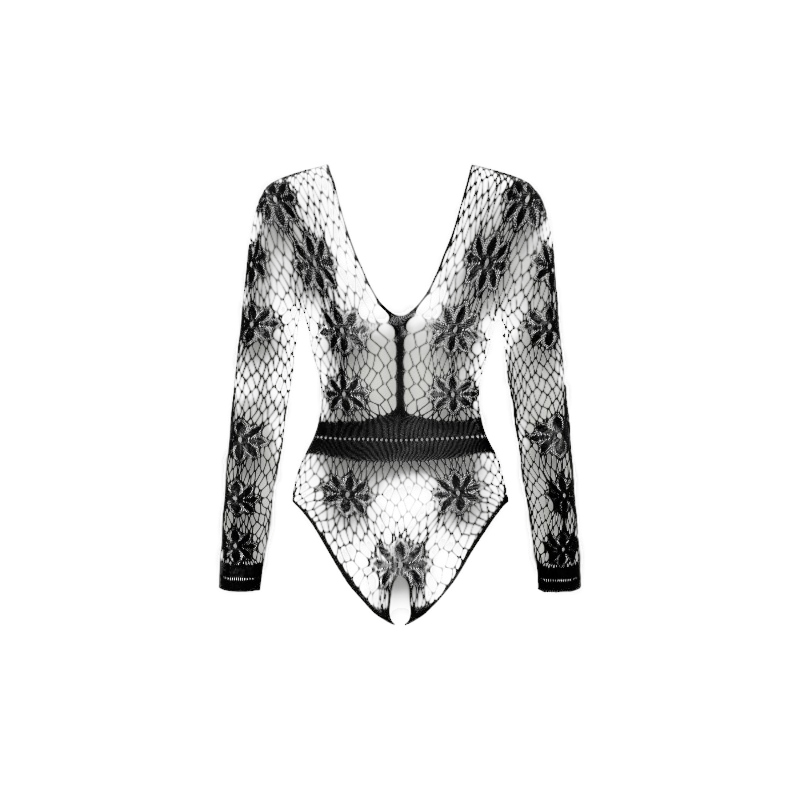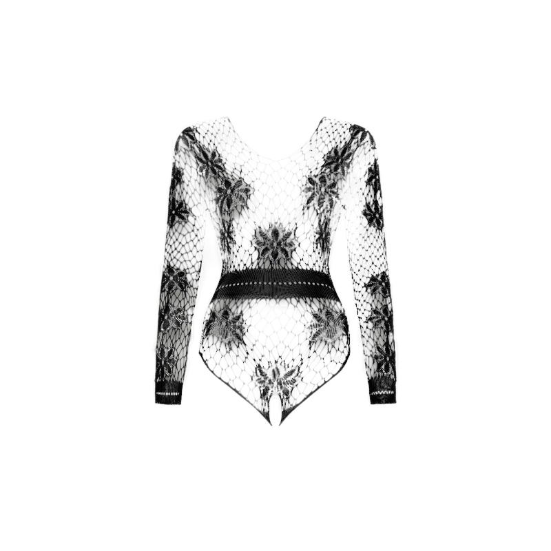 Zmysłowość spotyka elegancję w body, które podkreśla każdy centymetr kobiecego ciała. Regina to propozycja dla kobiet, które chcą wyglądać pociągająco i czuć się swobodnie. Transparentna siateczka z kwiatowym wzorem, długie rękawy i głęboko wycięte plecy tworzą harmonijną kompozycję z klasą. Możliwość noszenia na dwa sposoby – z paskiem między piersiami lub z tyłu – daje swobodę wyboru stylu.