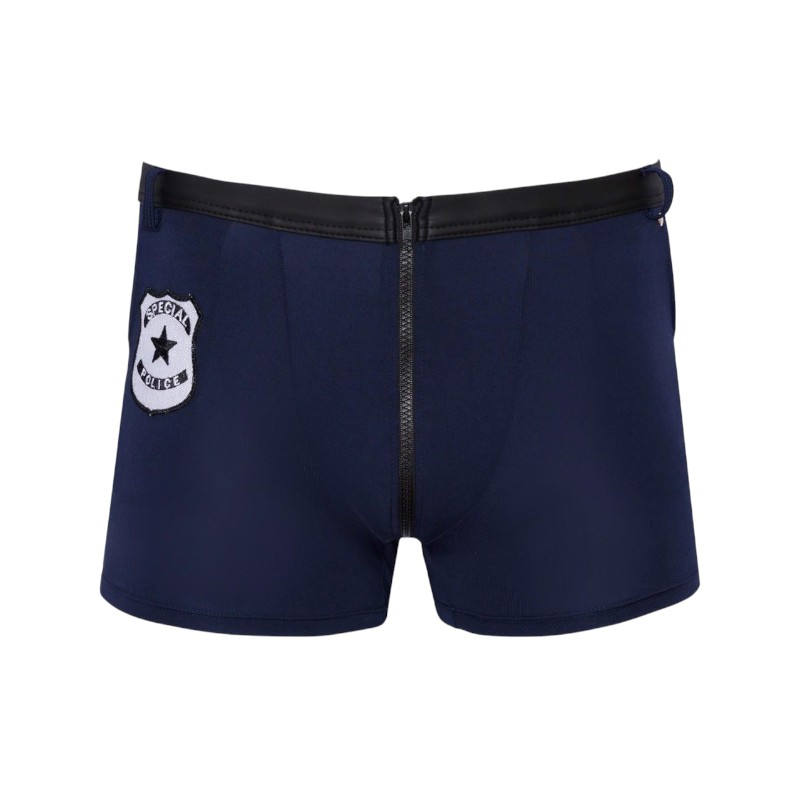 Dopasowane bokserki dla wyjątkowych misji! Ten model w stylu policyjnym wyróżnia się granatowym kolorem z matowymi czarnymi detalami w postaci pasa i szlufek. Z przodu znajduje się wyrazisty emblemat, który dodaje charakteru. Bokserki wykonano z miękkiego i elastycznego materiału, który zapewnia maksymalny komfort noszenia. Pod spodem znajduje się zamek błyskawiczny, co czyni ten model nie tylko stylowym, ale również praktycznym.
