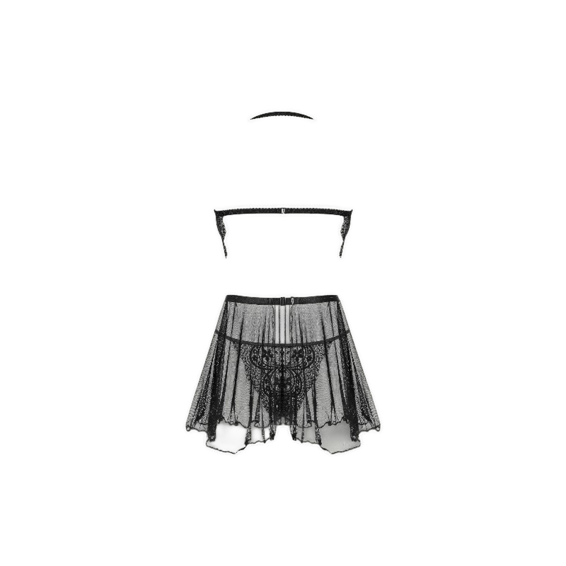 Halka Dark Mirage to idealny wybór dla kobiet, które cenią elegancję i niebanalny erotyzm. Zmysłowy fason podkreśla atuty sylwetki, a regulowane ramiączka pozwalają dopasować halkę do indywidualnych potrzeb. W komplecie eleganckie stringi, które idealnie uzupełniają całość.