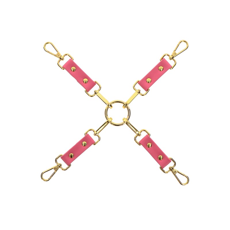 Uwolnij dominację i pożądanie dzięki temu pięknemu krzyżakowi na ręce i nogi! Wykonany z różowej, wegańskiej skóry PU i ozdobiony pozłacanymi metalowymi detalami wprost emanuje wyrafinowaniem. Ogranicz ręce i stopy za plecami, pozwalając dominującemu przejąć pełną kontrolę i zwiększyć Waszą przyjemność. Połącz krzyżak z kajdankami na nadgarstki, aby uzyskać bardziej intensywne doznania.