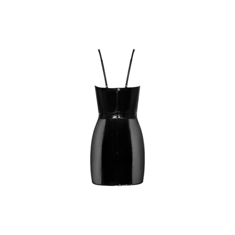 Połączenie lakierowanego blasku i zmysłowej transparentności, które podkreśla ciało w wyjątkowy sposób. Dopasowany fason pięknie modeluje sylwetkę, a elastyczne, prześwitujące wstawki po bokach i z przodu kusząco odsłaniają skórę. Wyprofilowane miseczki nadają dekoltowi ponętny kształt, a szerokie, regulowane ramiączka zapewniają komfort noszenia. Z tyłu praktyczne zapięcie na napy i zamek błyskawiczny, które ułatwiają zakładanie. Wyjątkowy wybór dla tych, którzy cenią odważny i elegancki styl.