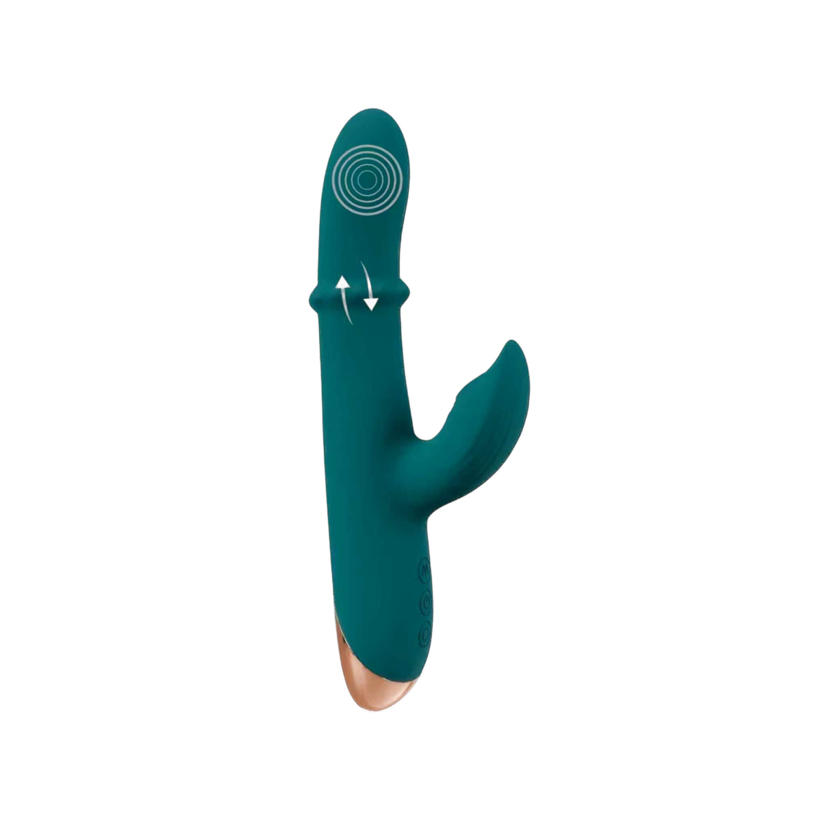 Aby zapewnić wszechstronną podwójną stymulację, teksturowany korpus oferuje 3 prędkości dopychania i 10 trybów wibracji w pulchnej główce. Elastyczna i idealnie spłaszczona wypustka do stymulacji łechtaczki posiada 10 trybów pulsacji.