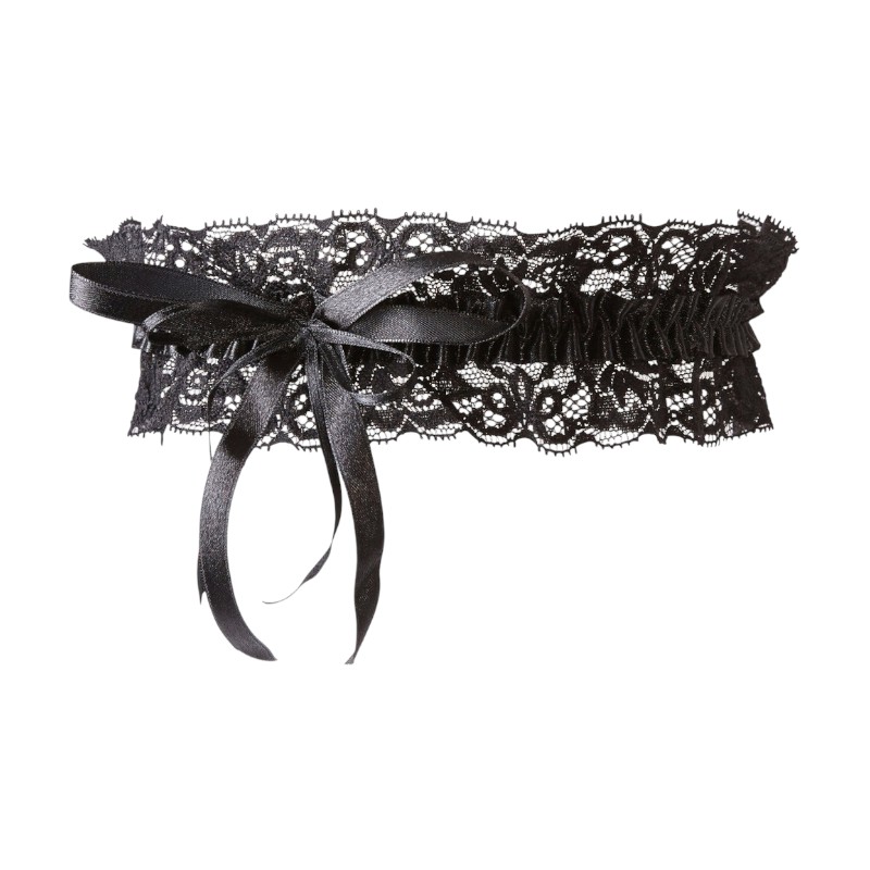 Czarna podwiązka wykonana z elastycznej koronki, ozdobiona satynową kokardką. Delikatne detale i miękki materiał zapewniają wygodę noszenia, a subtelny design dodaje elegancji. Idealna jako uzupełnienie bielizny lub specjalnej kreacji.