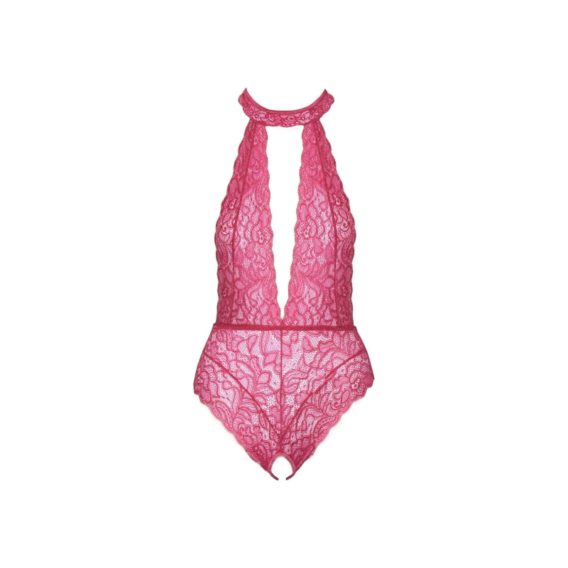 odaruj sobie odrobinę zmysłowego luksusu z koronkowym body w odważnym różowym kolorze. Delikatna, miękka koronka otula ciało, podkreślając jego kształty i nadając całości niezwykle kobiecego charakteru. Głęboki dekolt z efektownym wycięciem przyciąga spojrzenia, a odkryte plecy dodają lekkości i śmiałości.