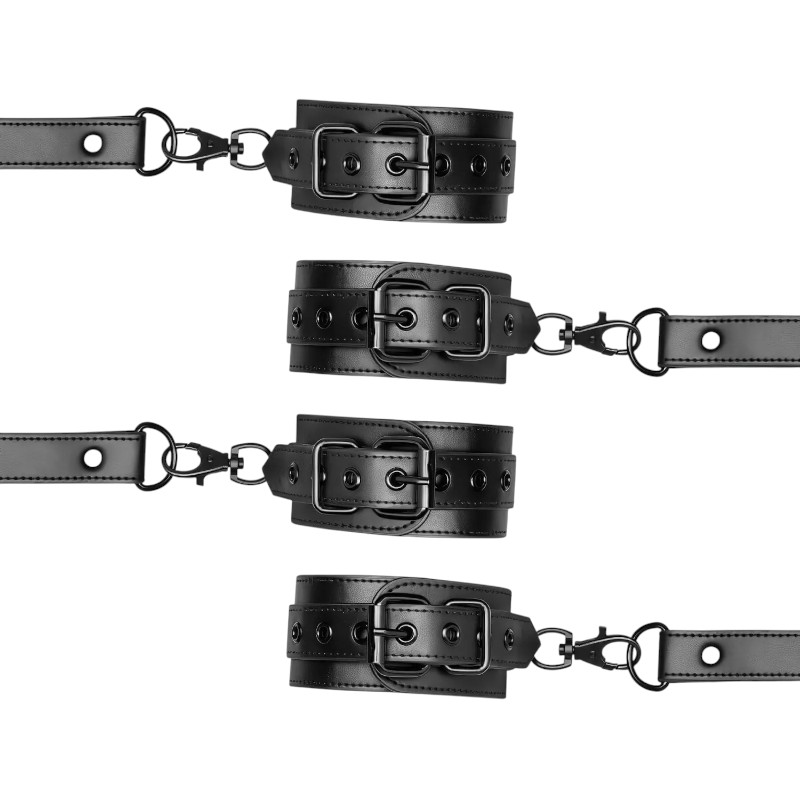 Przeżyj nowy poziom intensywnych doznań, przejmując kontrolę lub oddając ją partnerowi. Ten elegancki zestaw daje możliwość stworzenia różnorodnych scenariuszy, od subtelnej dominacji po pełną kontrolę. Wykonany z wytrzymałych, wysokiej jakości materiałów, pozwala na komfortowe, ale zdecydowane unieruchomienie nadgarstków i kostek, dostosowując się do różnych potrzeb i preferencji.
