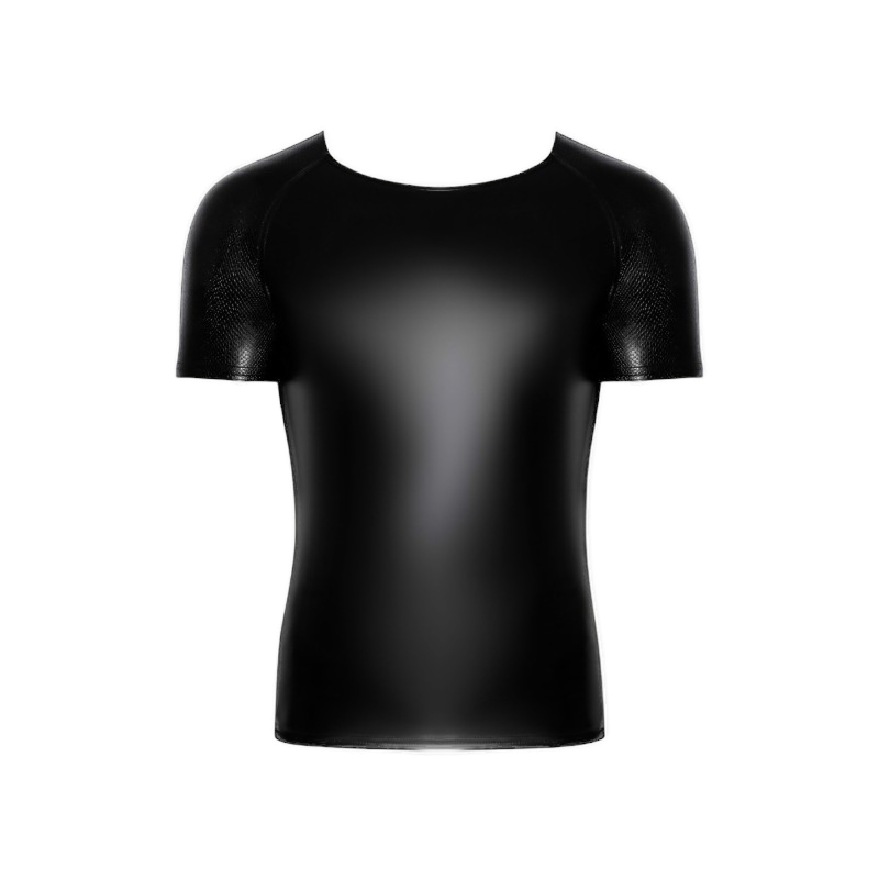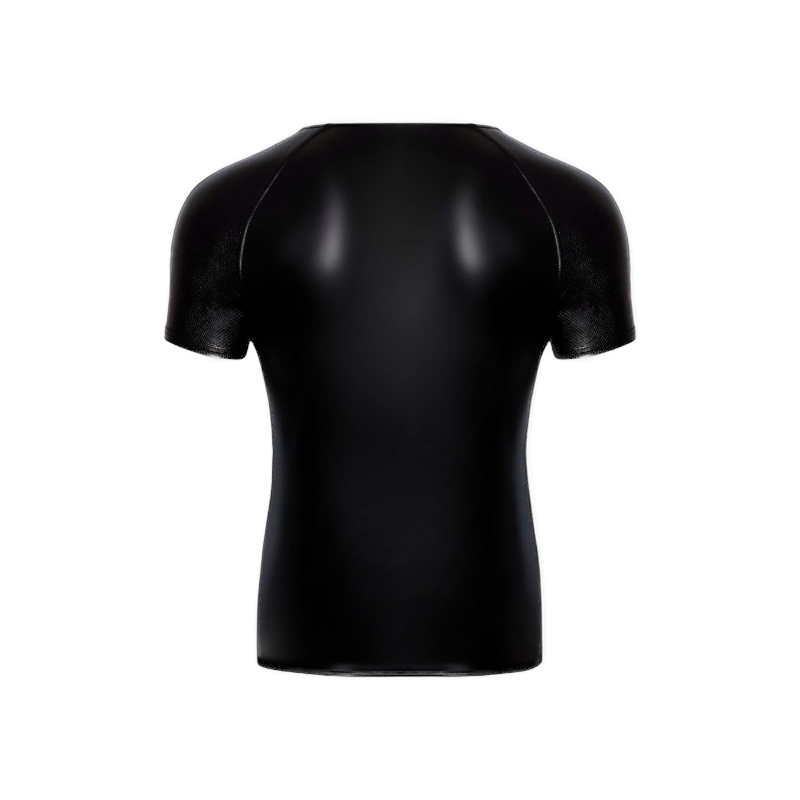 Elegancja w nowoczesnym stylu! Koszula z krótkim rękawem wykonana z materiału o matowym, mokrym połysku, zapewnia wyjątkowy wygląd i wygodę. Górna część oraz ramiona zdobione wężowym wzorem, dodają całości niepowtarzalnego charakteru. Dopasowany krój i elastyczna tkanina gwarantują komfort noszenia oraz idealne dopasowanie.