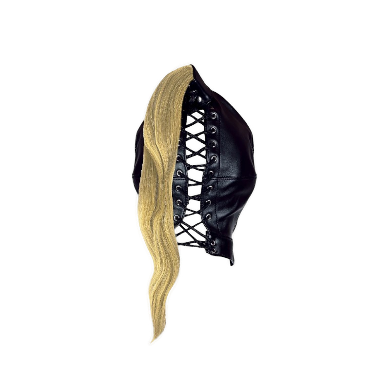 Wejdź w świat fetyszowych fantazji z tą wyjątkową maską BDSM z blond kucykiem! Ten stylowy kaptur skrywa twarz, pozostawiając odkryte oczy, nos i usta, co wzmacnia intensywność doznań. Długi, odpinany kucyk z jasnych włosów dodaje całości wyrazistego charakteru i podkreśla zmysłowość.