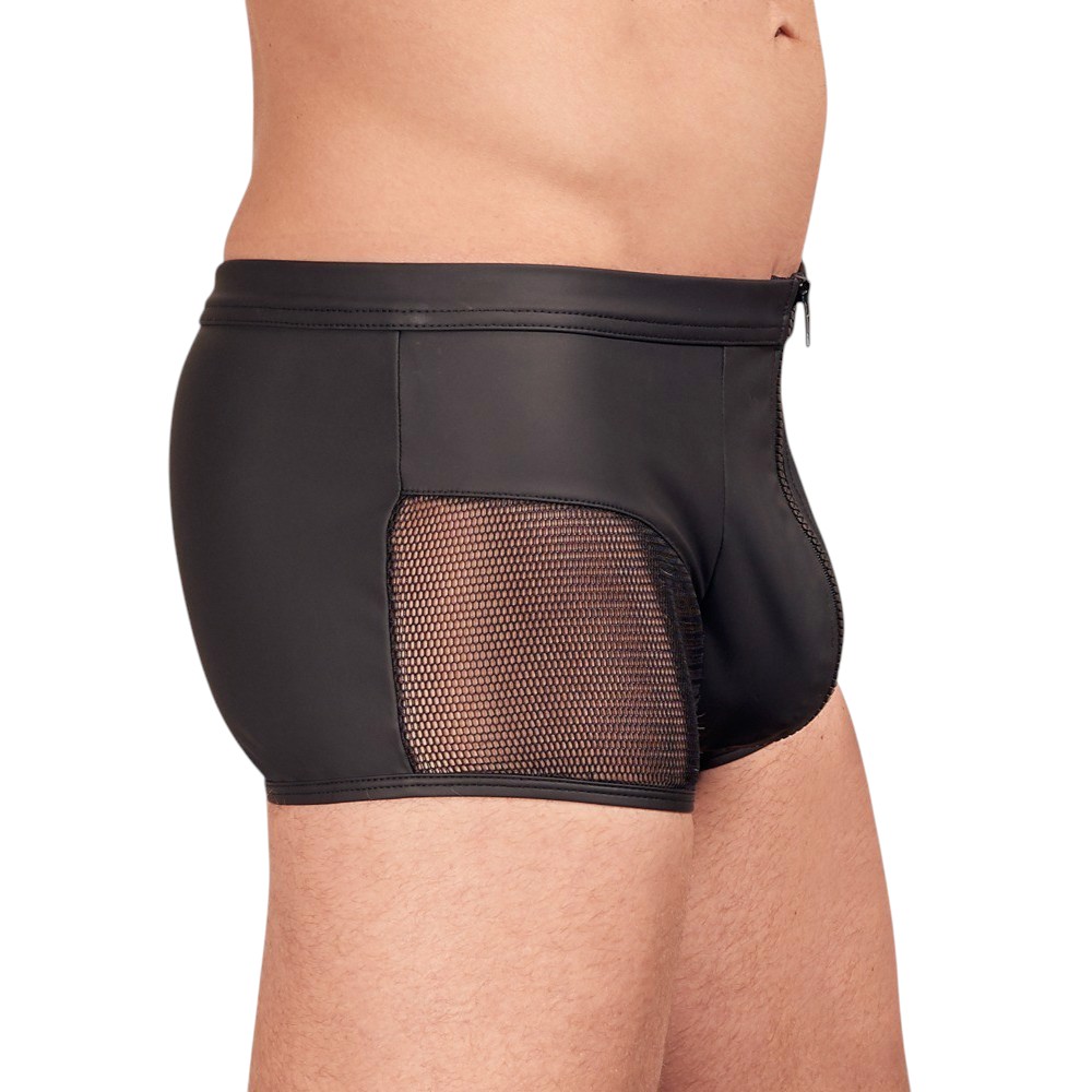 Transparentne wstawki z siateczki po bokach dodają im zmysłowego, prowokującego charakteru, a funkcjonalny zamek z przodu podkreśla ich erotyczny wymiar.