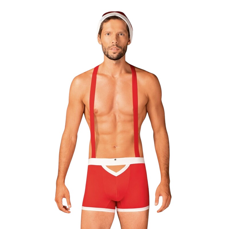 Stwórzcie niezapomnianą, świąteczną atmosferę z tym wyjątkowym zestawem. Czerwone bokserki z regulowanymi szelkami oraz klasyczna czapka z pomponem to idealne połączenie świątecznego humoru i zmysłowości. Szelki zapewniają doskonałe dopasowanie, a wycięcie z tyłu dodaje całości odrobiny pikanterii. Bokserki delikatnie podkreślają sylwetkę, czyniąc ten komplet doskonałym wyborem na świąteczne wieczory we dwoje.