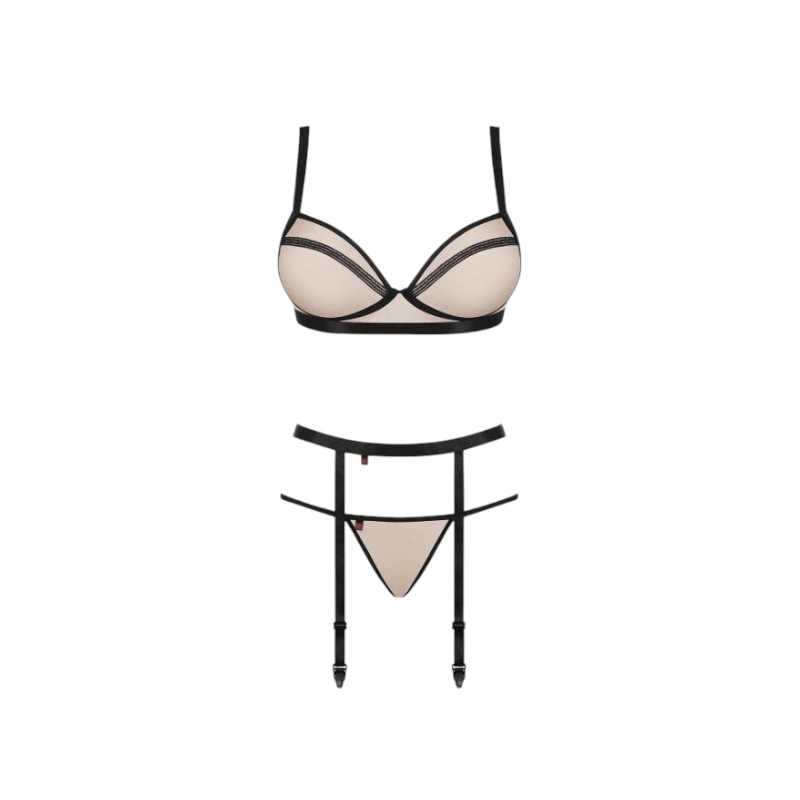 Marzysz o podróży do krainy przyjemności? Czas na jej (nie)małą odrobinę! Dziś wieczorem zostaniesz boginią elegancji. Seksowny, cielisty komplet z kolekcji Nudelia to idealne rozwiązanie dla kobiet, które lubią delikatny materiał i rozkoszny akcent w postaci paseczków. Połączenie prześwitującego beżu z czernią zapewni Ci wiele cudownych nocy oraz satysfakcję podczas noszenia tak wyjątkowo kobiecego kompletu. Tego wieczoru zdobędziesz jego serce na nowo! Gotowa poczuć się pięknie? Bo tak właśnie będziesz wyglądała w komplecie Nudelia!