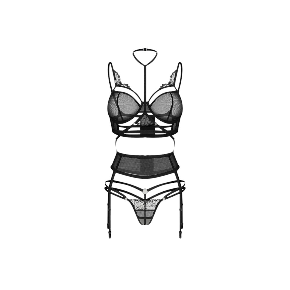 Odkryj odważną stronę swojej kobiecości z otwartym kompletem 3-częściowym Premisis Black. Ten zmysłowy zestaw bielizny łączy elegancję z prowokacyjnym charakterem, tworząc kompozycję, która przyciąga spojrzenia i podkreśla naturalne kształty sylwetki.