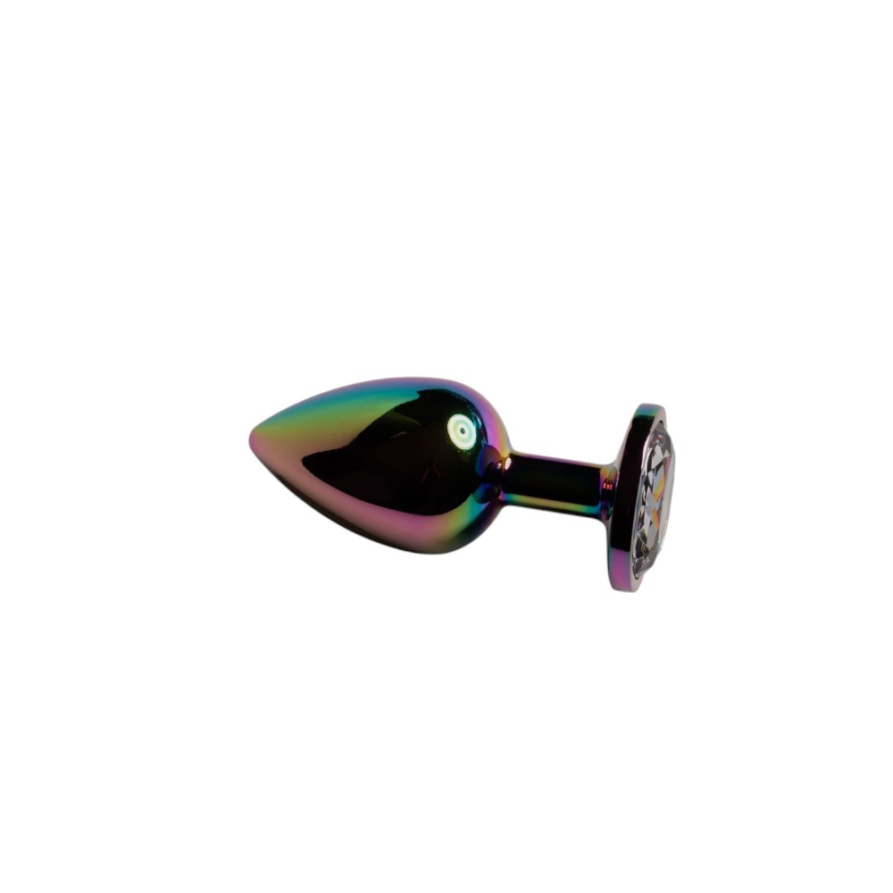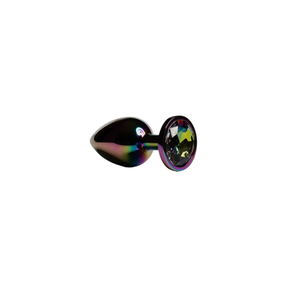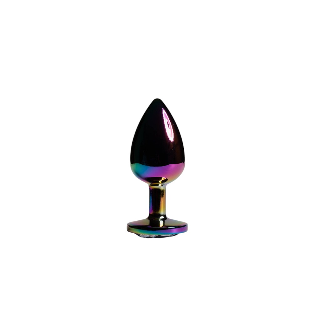 Ten metalowy korek analny to wysokiej jakości produkt z tęczowym klejnotem w podstawie. Elegancki plug ma zwężającą się sylwetkę i rozszerzaną podstawę, ozdobioną tęczową cyrkonią. Korek jest gładki w dotyku i całkowicie bezpieczny dla ciała. Jest to idealna wtyczka unisex, która dodaje czarującego i kolorowego akcentu Twoim analnym zabawom.