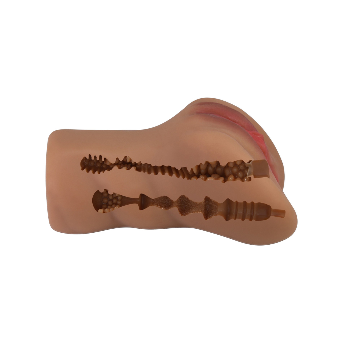 Wnętrze pokryte jest gęstym systemem wypustek i żeberek, które masują i pobudzają z każdym pchnięciem, dając uczucie maksymalnego otulenia. Otwory wejściowe został starannie odwzorowany, a detale nadano ręcznie dla jeszcze większego realizmu.