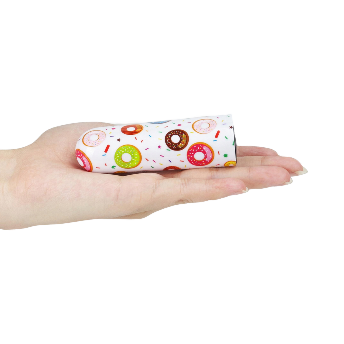 Akumulatorowy masażer łechtaczkowy Donut jest niewielkich rozmiarów, dzięki czemu można go mieć zawsze przy sobie, ale jest wystarczająco mocny, aby zapewnić silne wibracje.
