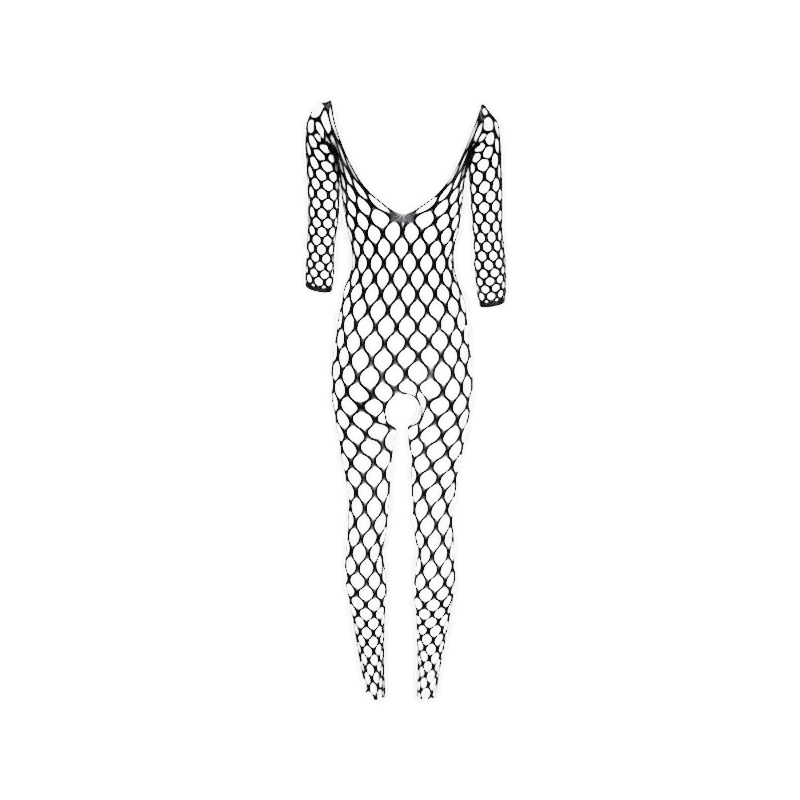 Podkreśl swoją odwagę i zmysłowość w tym wyjątkowym kombinezonie z siateczki. Materiał typu kabaretka idealnie dopasowuje się do ciała, akcentując jego kształty, a otwarty krok dodaje nuty pikanterii. To propozycja dla kobiet, które chcą uwodzić spojrzeniem i czuć się pewnie w każdej sytuacji. Idealny na gorące wieczory i specjalne okazje, kiedy chcesz podkręcić temperaturę w sypialni.