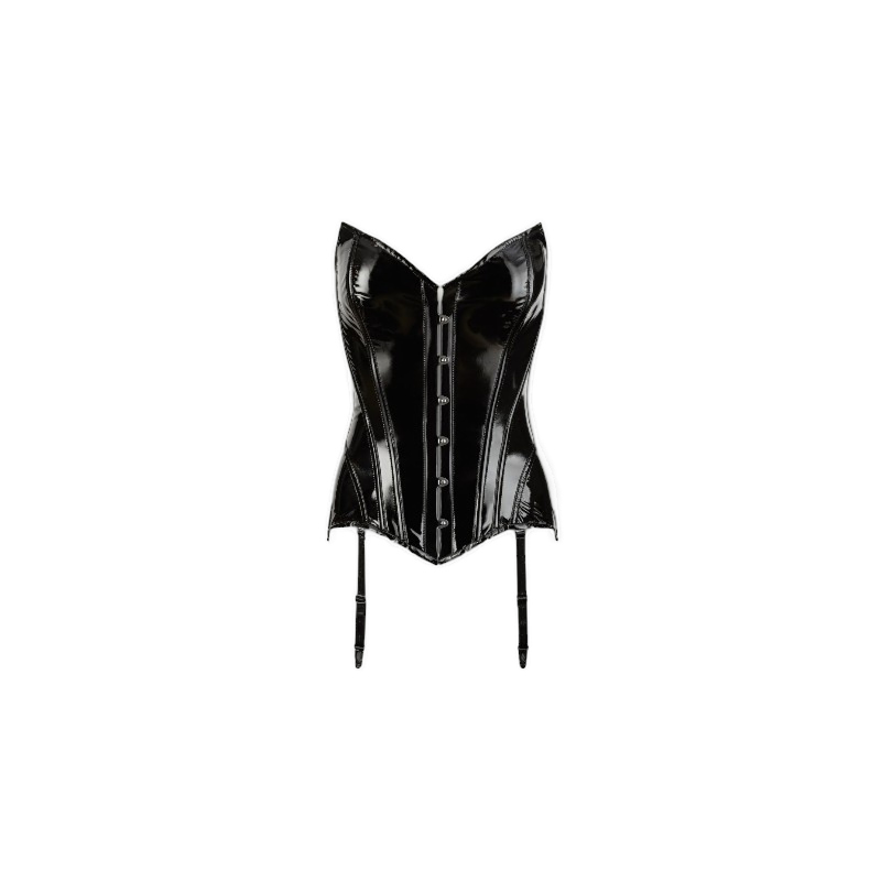 Seksowny gorset winylowy to połączenie elegancji i odważnego stylu. Usztywniany fiszbinami, z długim krojem i specjalnym wykończeniem na biodrach, które pięknie podkreśla i modeluje sylwetkę. Z przodu zapinany na wygodne haftki, z tyłu zdobiony efektownym sznurowaniem, które pozwala na idealne dopasowanie. Posiada 6 regulowanych i odpinanych pasków do pończoch, co czyni go niezwykle funkcjonalnym dodatkiem do każdej garderoby erotycznej.