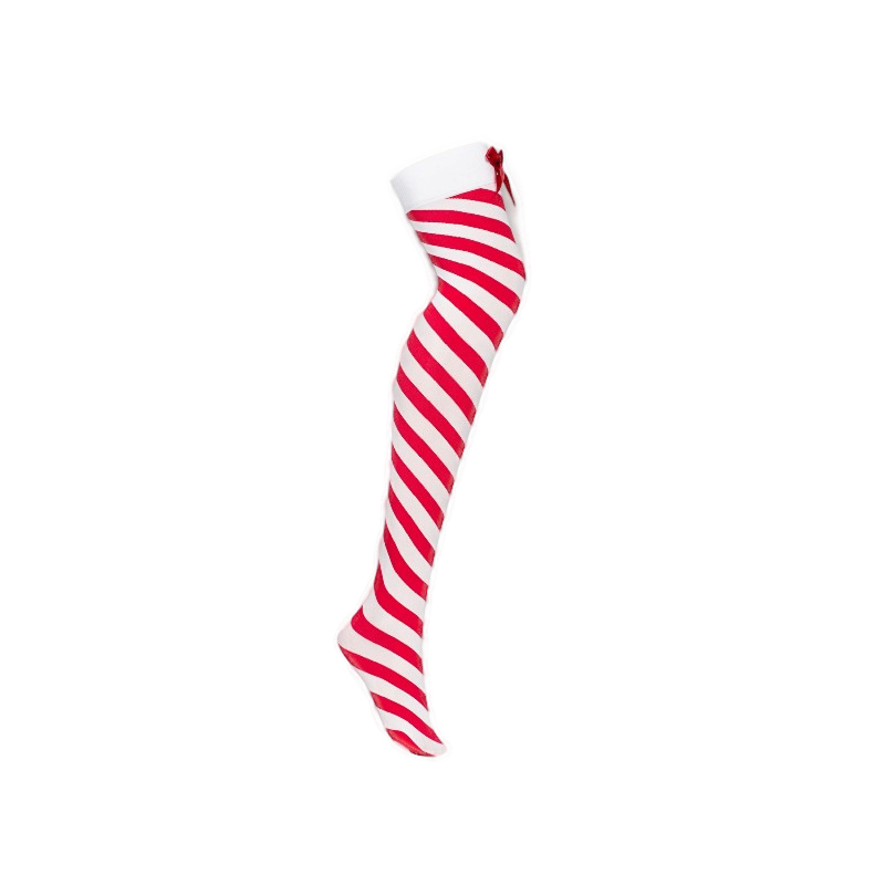 Dodaj odrobinę świątecznej figlarności do swoich stylizacji z tym uroczym dodatkiem! Czerwone pończochy w biało-czerwone paski przyciągną uwagę i wprowadzą radosny, zabawny nastrój. Subtelne kokardki na udach dodają im uroku, a miękki, elastyczny materiał zapewnia wygodę noszenia przez cały wieczór. Pończochy doskonale pasują do świątecznych kostiumów lub jako kokieteryjny akcent do wieczornej stylizacji.
