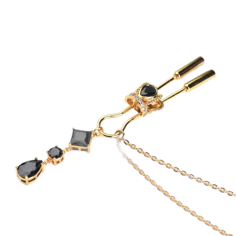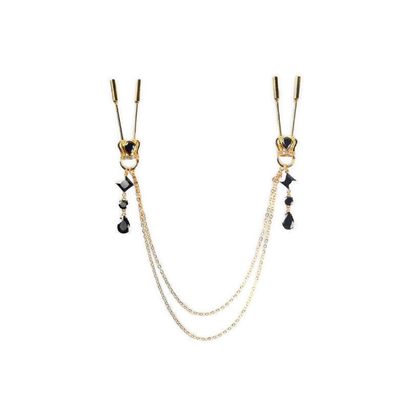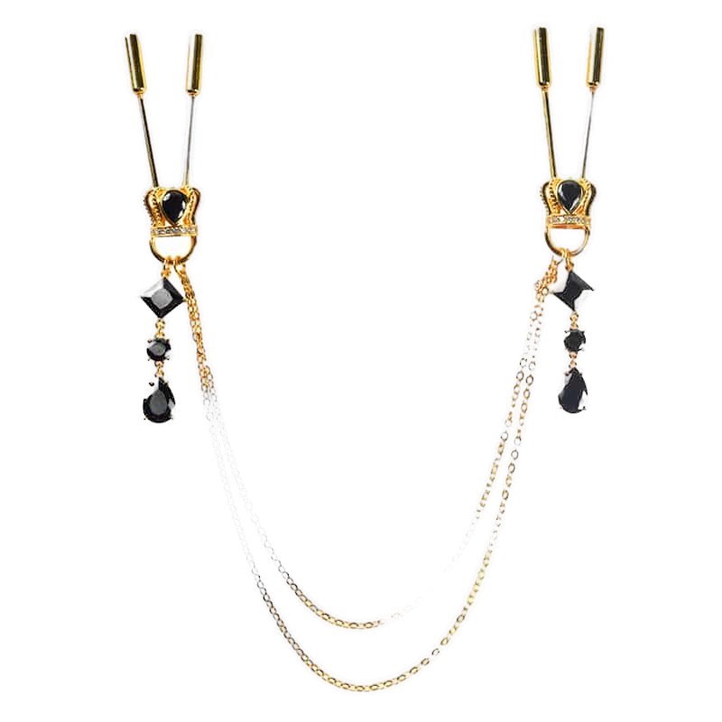 Pozwól, aby biżuteryjny dodatek przejął kontrolę nad twoim ciałem i uwolnij najgłębsze pragnienia. Zaciski powodują wzmocnioną wrażliwość sutków i można regulować siłę zacisku w zależności od potrzeb, przesuwając koroną w górę i w dół. Łańcuszki między klamerkami zapewnią biżuteryjny wygląd i będą się pięknie prezentować na tle nagiego ciała.