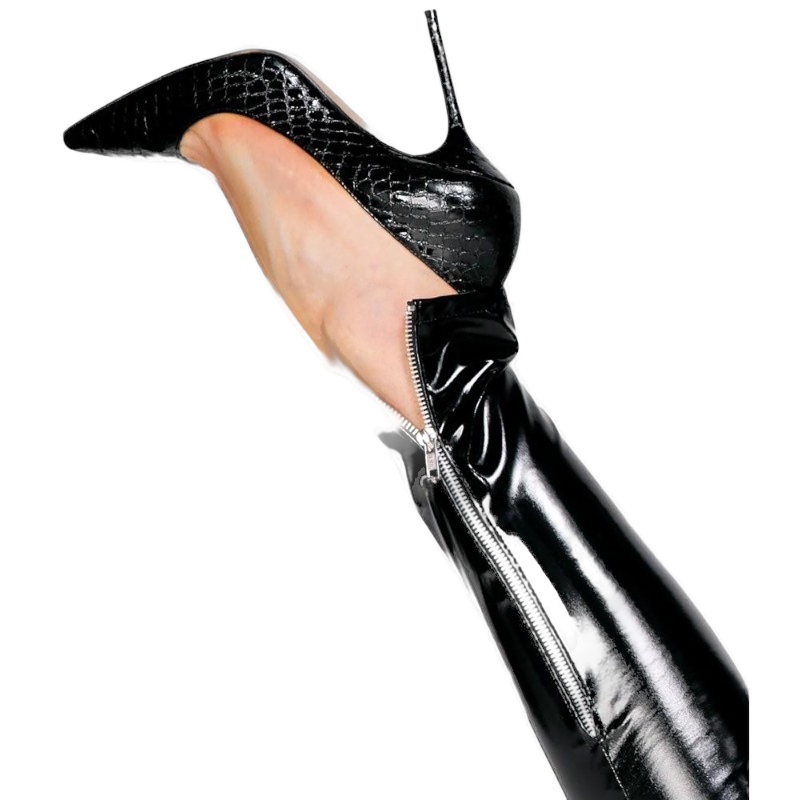 Te eleganckie, obcisłe spodnie w stylu 5 kieszeni wyróżniają się błyszczącym materiałem w kolorze czarnym, który przyciąga wzrok i podkreśla sylwetkę. Zostały zaprojektowane z myślą o miłośnikach odważnych, zmysłowych stylizacji, które łączą klasyczny fason z nowoczesnym, ekstrawaganckim akcentem. Dzięki zastosowaniu zamków przy kostkach, zakładanie spodni jest łatwiejsze, a dodatkowe detale, takie jak szlufki na pasek, nadają całości charakteru. Idealne do codziennych, jak i wieczorowych stylizacji, które przyciągną uwagę.
