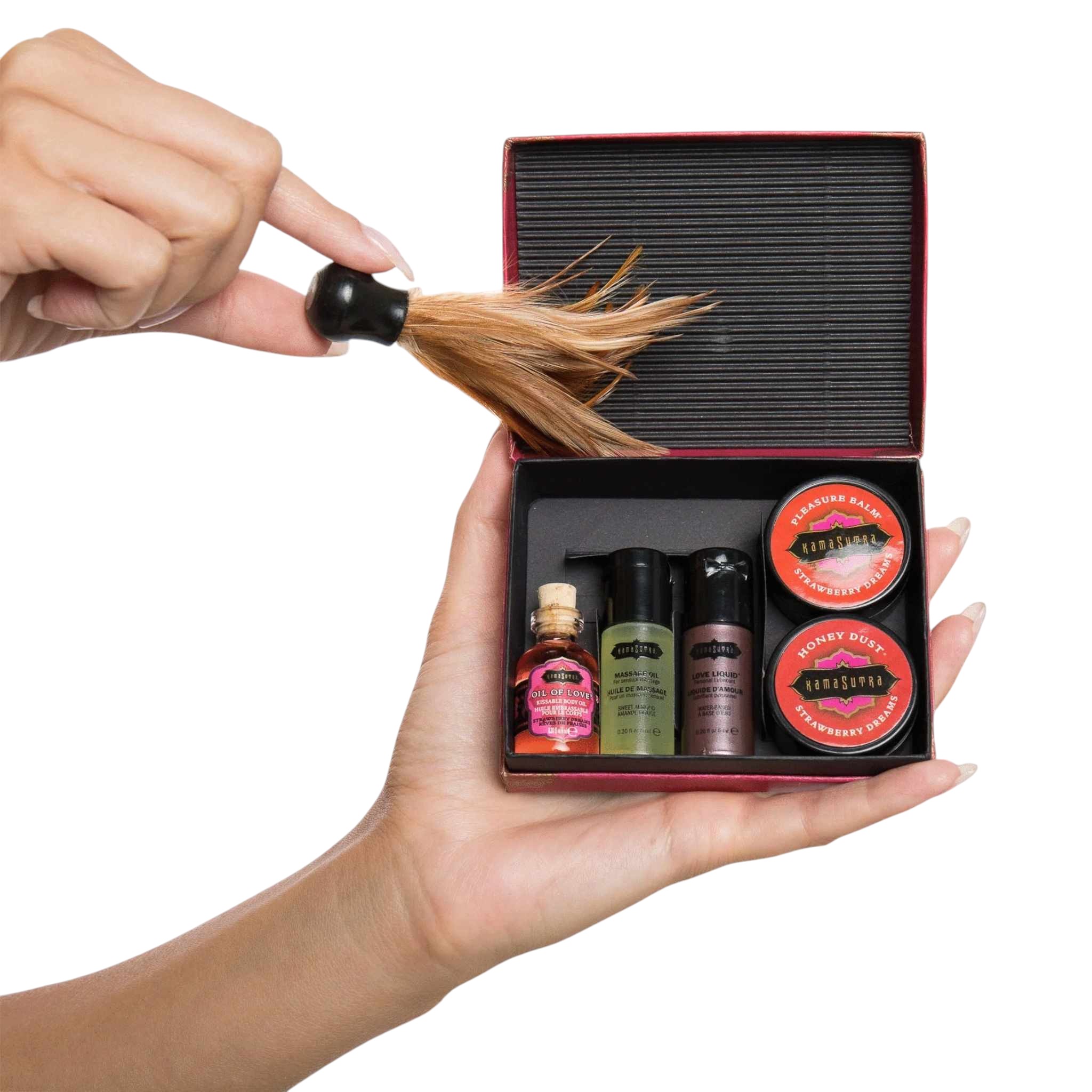 Rozpal swoje zmysły wraz z tym zestawem afrodyzjaków od KamaSutra. Ta luksusowa przyjemność składa się z miniaturowych wersji olejków do erotycznego masażu o pobudzających zapachach. Idealnie nadaje się na weekend pełen wrażeń, który na długo pozostanie w pamięci. Pozwólcie sobie na otulenie ciał przyjemnością, a będą tak na siebie oddziaływać, jak nigdy wcześniej.